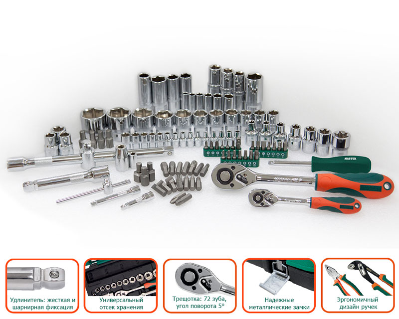 Набор инструмента MASTER 1/4", 1/2" (108+2 предметов), Aist 4081110-M