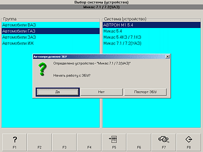Автоопределение типа ЭБУ** — для автомобилей ВАЗ, ГАЗ, УАЗ, ЗАЗ программа позволяет в автоматическом режиме определить тип ЭБУ электронной системы управления двигателем и настроиться на работу с ним.