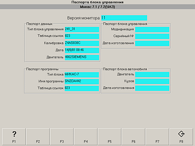 Просмотр паспортных, идентификационных данных ЭБУ** - режим считывания сведений об ЭБУ диагностируемой системы (заводской номер ЭБУ, версия прошивки и т.д.)