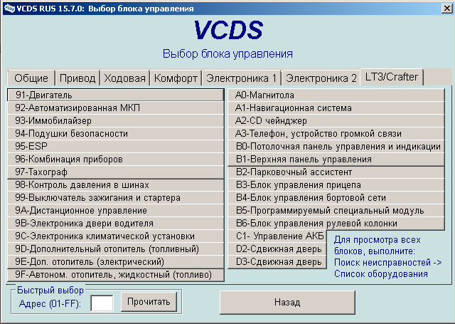 - Добавлены новые адреса блоков управления, использующих UDS