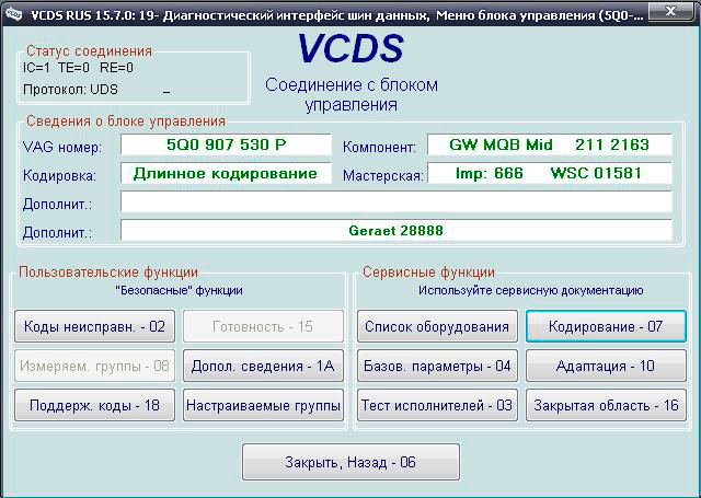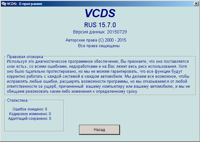 Русская версия программы VCDS Rus, с которой работает этот адаптер Выпуск 17.1.3.