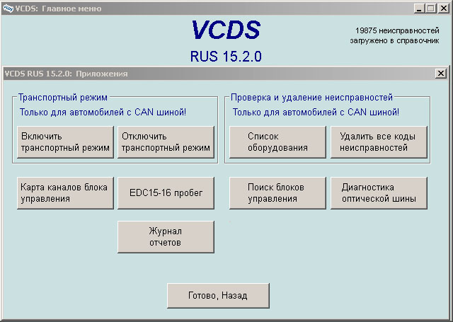 - переработан протокол поиска неисправностей, добавлен флажок (Агрессивный режим), позволяющий получать более расширенное описание неисправностей для UDS блоков управления;
