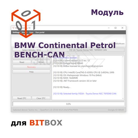 ![]() | BitBox программа для чип тюнинга, Ключ защиты это развивающийся программный комплекс, который позволяет производить идентификацию, чтение и запись внутренней флеш-памяти блоков управления различного назначения. Работа с блоками осуществляется через CAN или K-line интерфейсы данных при помощи адаптера Pass-thru J2534. Ключ без модулей не продается! | 00000005629 | 2 000 |