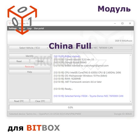 ![]() | BitBox программа для чип тюнинга, Ключ защиты это развивающийся программный комплекс, который позволяет производить идентификацию, чтение и запись внутренней флеш-памяти блоков управления различного назначения. Работа с блоками осуществляется через CAN или K-line интерфейсы данных при помощи адаптера Pass-thru J2534. Ключ без модулей не продается! | 00000005629 | 2 000 |