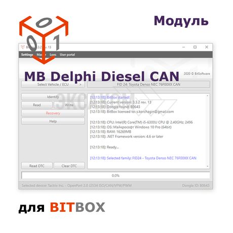![]() | BitBox программа для чип тюнинга, Ключ защиты это развивающийся программный комплекс, который позволяет производить идентификацию, чтение и запись внутренней флеш-памяти блоков управления различного назначения. Работа с блоками осуществляется через CAN или K-line интерфейсы данных при помощи адаптера Pass-thru J2534. Ключ без модулей не продается! | 00000005629 | 2 000 |