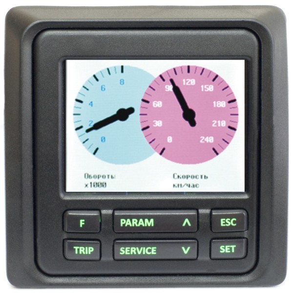 Цветной TFT дисплей 2.4" разрешением 320х240 и рабочей температурой от -20 градусов. Цветовое оформление дисплеев может быть настроено пользователем индивидуально (по RGB каналам). Четыре предустановленные цветовые схемы с быстрым переключением.