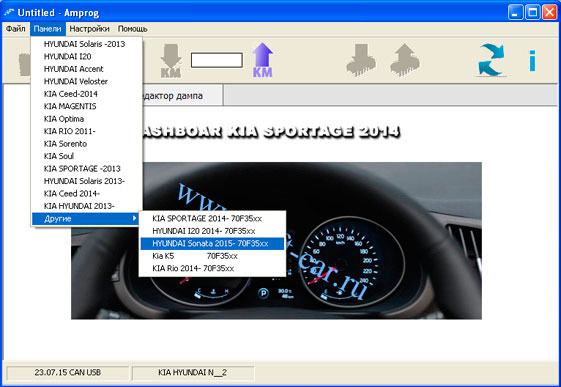 Интерфейс программного обеспечения "CAN USB KIA HYUNDAI VERSION"