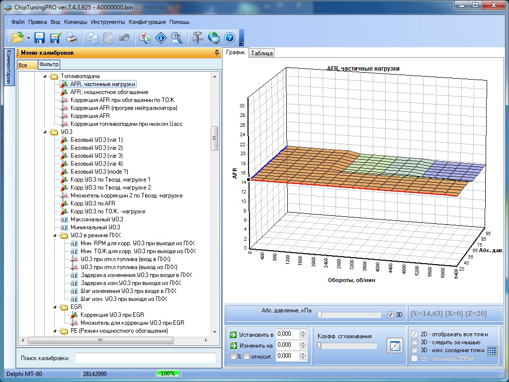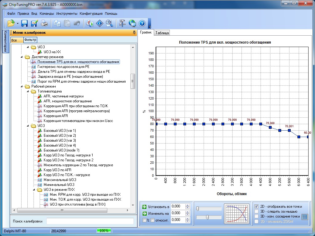 Работает совместно с ChipTuningPRO 7.4.3 или выше. Программирование ЭБУ Delphi MT80 осуществляется с помощью загрузчика CombiLoader.