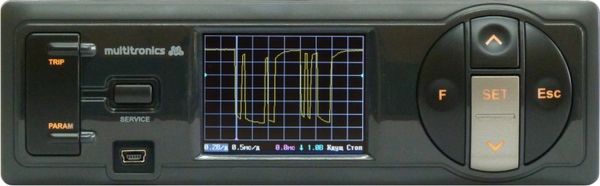 Бортовой компьютер может работать в качестве осциллографа (при подключении опционального кабеля "Multitronics ШП-2"): наблюдение и анализ сигналов различных датчиков и цепей а/м непосредственно на экране компьютера, сохранение и перенос осциллограм на персональный компьютер. Сравнив записанный сигнал с эталонным, вы получаете дополнительную возможность диагностики узлов автомобиля в случае сложно диагностируемых неисправностей: износ, заклинивание, замыкание, плохой контакт и т.д. По своим возможностям “Осциллограф” максимально приближен к настольным решениям: имеется возможность управлять разверткой, триггером, измерять временные интервалы, оценивать амплитуды сигналов.