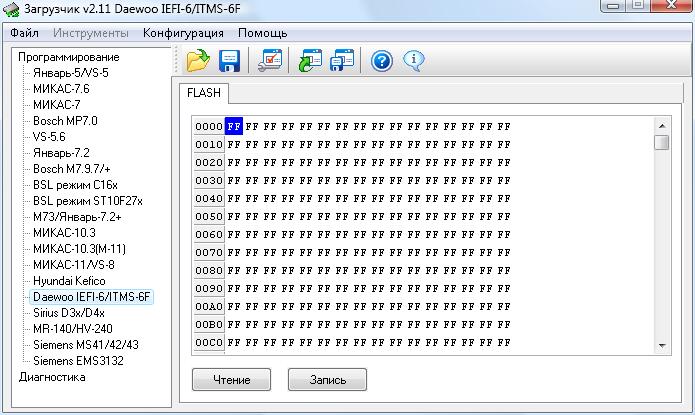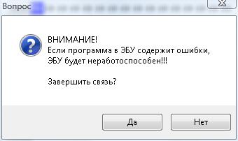 Во время установки связи в контроллер передается управляющая программа, позволяющая производить операции чтения-записи. При возникновении ошибок во время операции записи не выключайте зажигание и не обесточивайте контроллер, т. к. при этом во FLASH-памяти контроллера может оказаться поврежденная программа, что приведет к необходимости выпаивать микросхему FLASH-памяти для последующего программирования ее на специализированном программаторе!