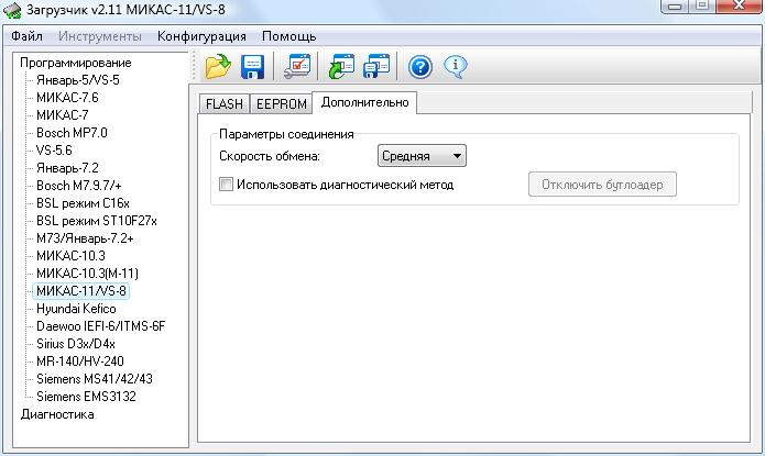 Для альтернативного режима записи ЭБУ без доработки со старым бутлоадером, проделайте следующие действия: