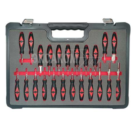 Набор для разъединения электроконтактов, 23 предмета, предназначен для бережного демонтажа контактов (плоских, круглых и др.) из разъёмов. Экстракторы, входящие в комплект набора, служат для разблокировки замков контактов в электрических разъёмах.