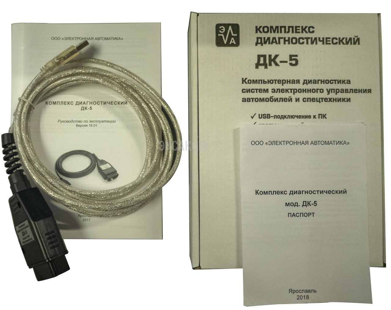 ДК-5 предназначен для проведения диагностики электронных систем управления дизельных двигателей. Прибор выполнен в виде соединительного кабеля, оснащенного разъемами для подключения устройства к колодке диагностической автомобиля (стандарта OBD-II) и к USB-порту компьютера (Type A). Связь с блоками управления осуществляется по интерфейсам K-Line, CAN.