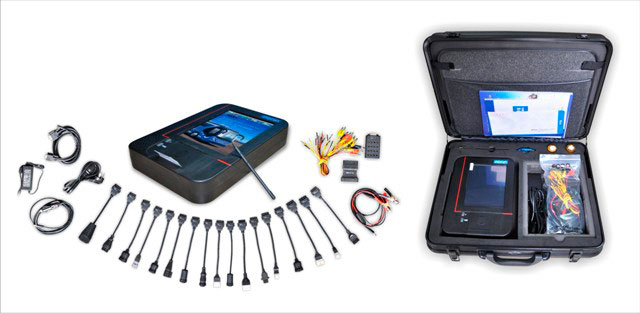 Сканер выполнен в форме моноблока и оснащён цветным сенсорным 8-дюймовым TFT дисплеем (разрешение 800х600). Процессор ARM от SAMSUNG позволяет программному обеспечению работать в режиме реального времени, что очень важно во время диагностики. Сканер полностью русифицирован. Имеется встроенный принтер для распечатки результатов диагностики клиенту. Большое количество переходников и диагностических кабелей в комплекте поставки. Так же присутствует универсальный пиновый кабель, который позволяет подключиться к автомобилю, к которому нет специального кабеля в комплекте. Прибор поставляется в ударопрочном чемодане.