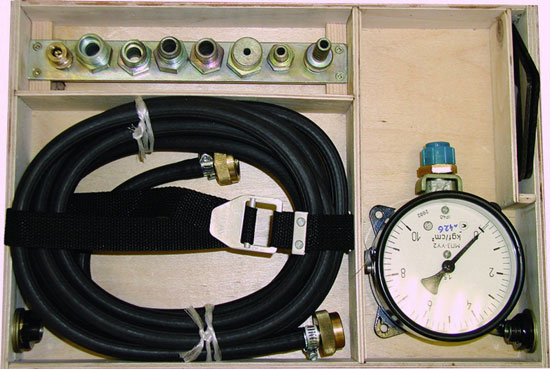 Манометры высокой точности обеспечивают измерения давления воздуха в характерных точках и на контрольных выводах пневматического и пневмогидравлического тормозного приводов и позволяют осуществлять контроль за утечкой воздуха.