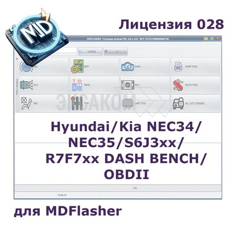 Лицензия 028 Hyundai/Kia NEC34/NEC35/S6J3xx/R7F7xx DASH BENCH/OBDII