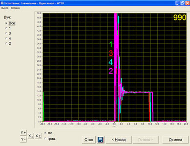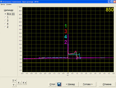 - режим многоканального осциллографа с синхронизациией от любого из каналов или от спец. каналов синхронизации (ДПКВ, ДВМТ, индуктивных клещей в качестве датчика первого цилиндра) или самописца. Отображение до 8 каналов на экране с возможностью записи. -