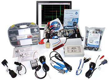 Клещи токовые КТ-14C, Датчик абсолютного давления ДТК-2C датчик абс.давления/пульсаций 300/13 кПа, Датчик давления ДД-8C 40 бар, с комплектом переходников для подсоединения к дизельным двигателям, Датчик давления ДД-10C 25 бар, с двумя переходниками под резьбы М14х1.25 и М12х1.25, Усилитель заряда УЗ-ПC -усилитель для пьезодатчиков ПД-4/6 - Сканер МТ10СОМ поддерживает режимы сканера, 2-х канального осциллографа или самописца с возможностью записи и позволяет вести базу данных.