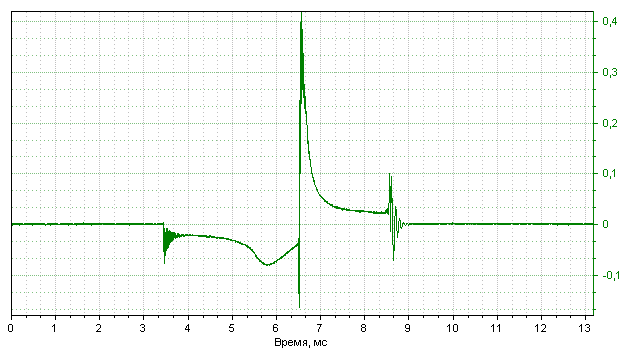 Осциллограмма импульса вторичного напряжения одного из цилиндров индивидуальной системы зажигания, снятая с помощью индуктивного датчика Lx1.
