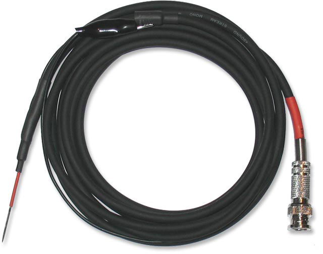 Предназначен для подключения к различным датчикам, разъемам блоков, цепям первичного зажигания, форсункам и т.д. В качестве шнура используется мягкий микрофонный кабель с плотной экранирующей оплеткой. Игла щупа гибкая - не сломается, но в тоже время достаточно прочная (диаметр 1 мм) для того, что бы ее было удобно просунуть в различные трудно доступные места. В случае не использования заземляющего зажима, например масса автомобиля уже соединена с корпусом прибора проводом заземления, для фиксации зажима предусмотрен специальный крепеж на кабеле, в котором прячется зажим, что устраняет возможность попадания болтающегося провода заземления во вращающиеся части двигателя. Доступны три цвета маркировки щупа: красный, синий и зеленый.
