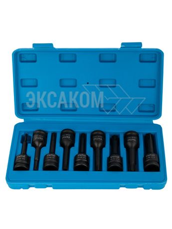 Набор включает в себя 9 ударных головок — бит Ribe R5-R14, изготовленных из хром ванадиевой стали.