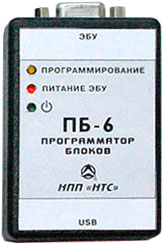 Программатор блоков ПБ-6 предназначен для модификации программного обеспечения электронных блоков управления (ЭБУ) Январь-5.1, Январь-5.1.Х, Январь-7.2, VS-5.1, VS-5.6, Микас-7.1, Микас-7.2, Микас-7.6, М74, установленных на автомобилях ВАЗ, ГАЗ, УАЗ, Daewoo (Sens). В будущем возможно расширение перечня поддерживаемых блоков.