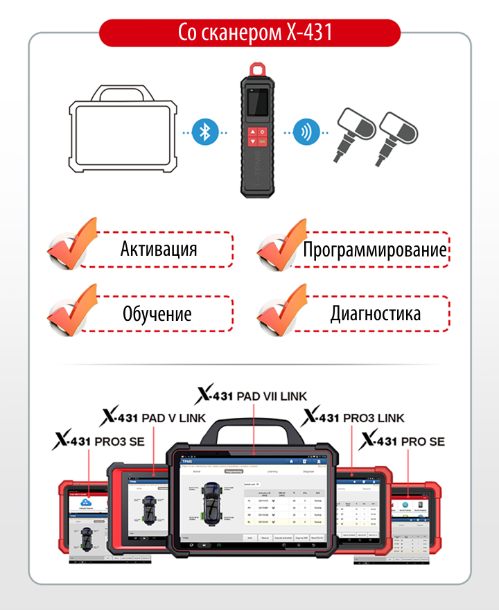 - Для сканера Х-431: Активация, Программирование, Переобучение и Диагностика датчиков.