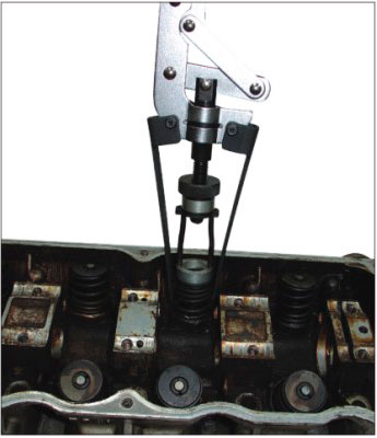 - Возможно, использовать этот рассухариватель для замены колпачков не снимаю ГБЦ с блока двигателя (т.к. упор происходит непосредственно в пружину клапана). Но для этого может понадобиться адаптер для подвода сжатого воздуха.