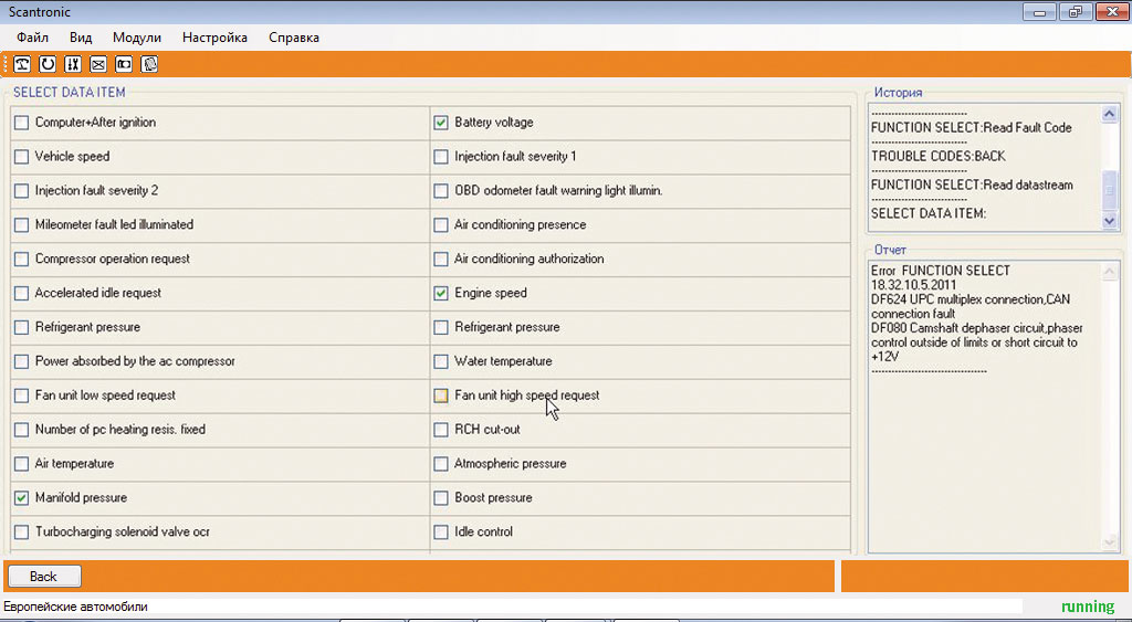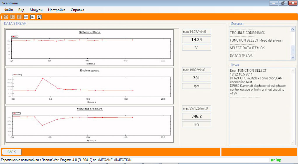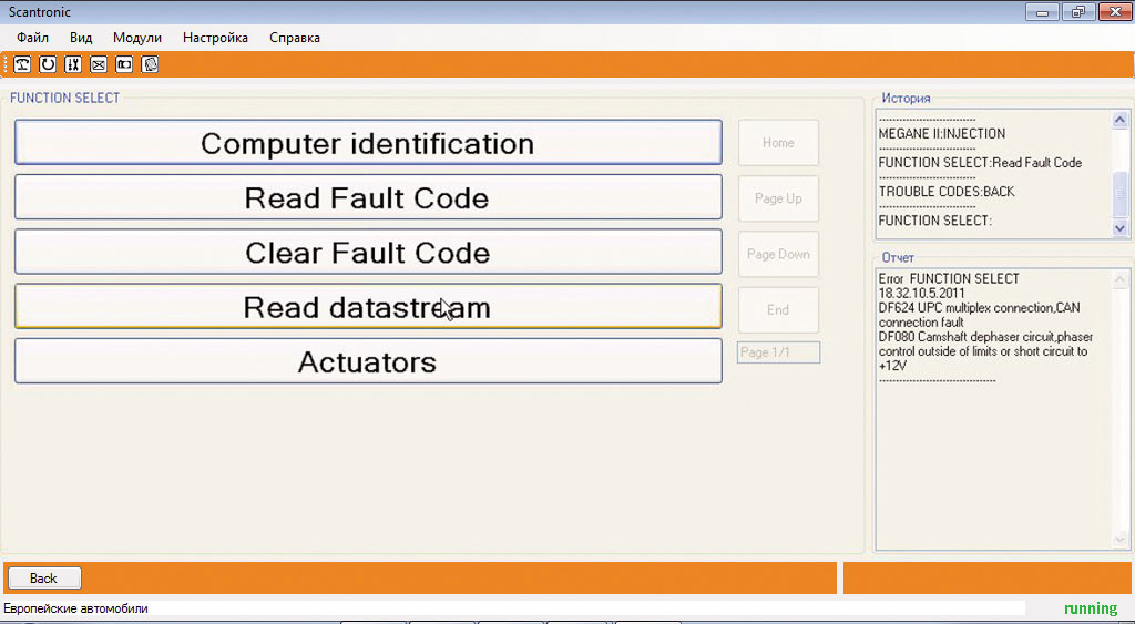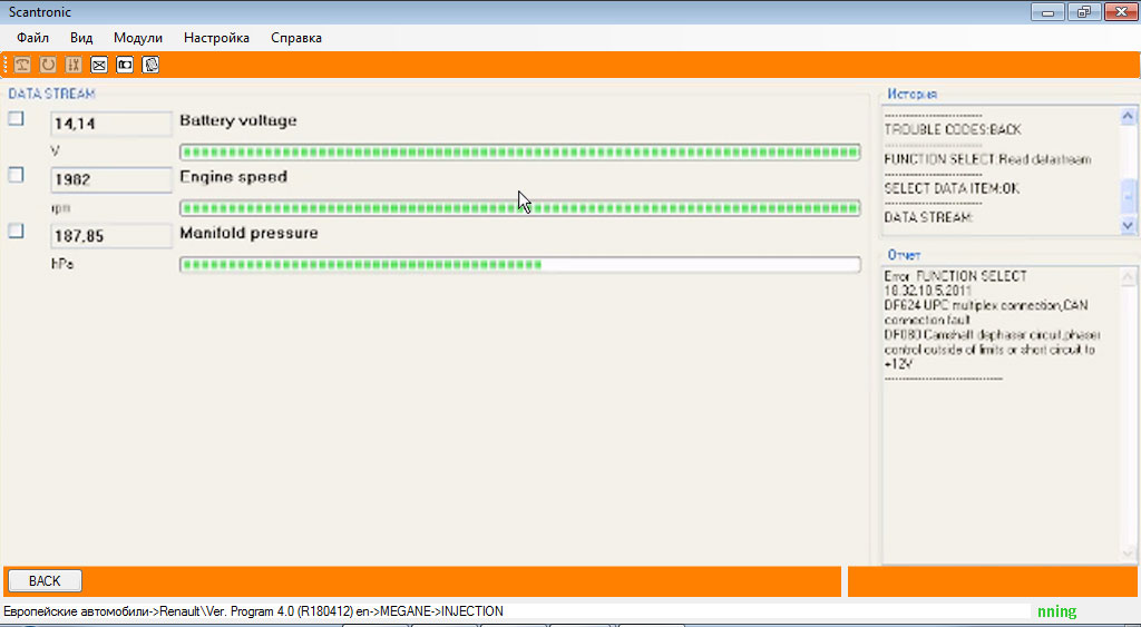 • Двигатель чтение активных кодов, чтение сохраненных кодов, стирание кодов.