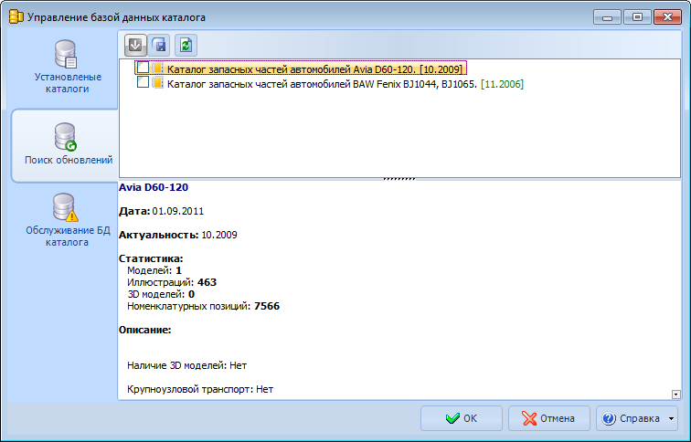 | Пополнение каталожной базы программы новыми каталогами происходит с определенной регулярностью. Чтобы Вам не заходить постоянно на сайт и не отслеживать какие же каталоги появились в доступе, для Вас предоставлен механизм поиска обновлений. С помощью его Вы сможете автоматически получать сообщения о том, когда и какие именно каталоги выложены на сайте. |