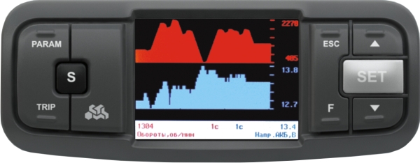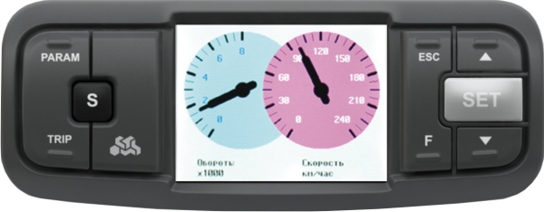 Цветной TFT дисплей 2.4" разрешением 320х240 и рабочей температурой от -20 градусов. Цветовое оформление дисплеев может быть настроено пользователем индивидуально (по RGB каналам). Четыре предустановленные цветовые схемы с быстрым переключением.