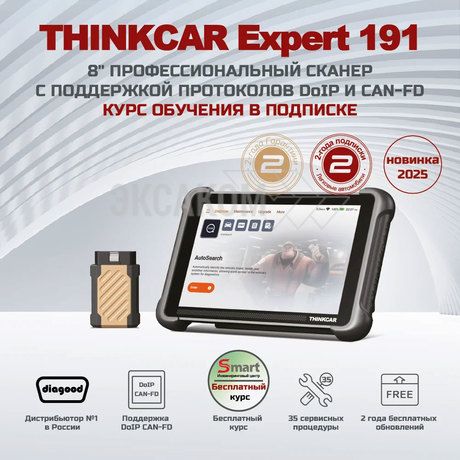 - THINKCAR THINKTOOL Expert 191 - это диагностический сканер для автосервисов, который обеспечивает полный спектр диагностических функций. Он оснащен 8" планшетом с поддержкой новейших протоколов DoIP и CAN FD, что позволяет диагностировать все системы автомобиля на дилерском уровне.