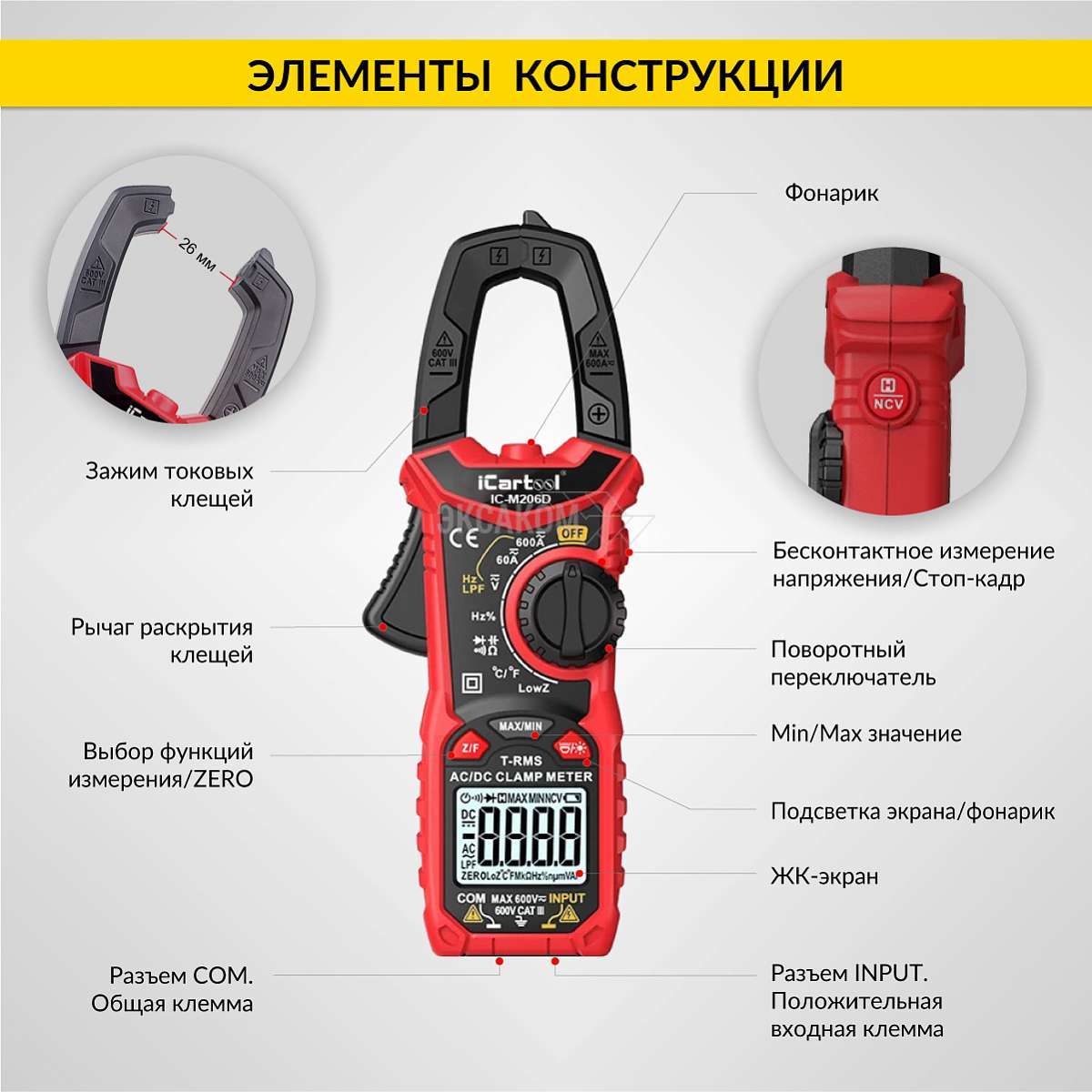 Токовые клещи постоянного/переменного тока 600A iCartool IC-M206D