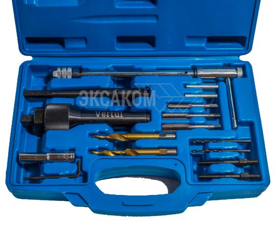 - Набор профессионального инструмента для извлечения свечей накаливания и восстановления резьбы в их колодцах, а также для высверливания шпилек, болтов, свечей зажигания.