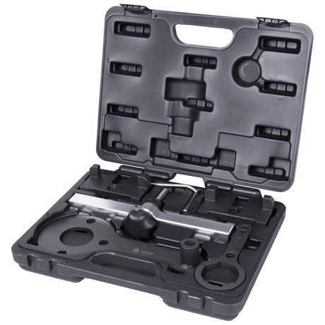 Набор приспособлений предназначен для установки и проверки фаз ГРМ двигателей BMW модификации N63. Набор комплектуется необходимым инструментом, с помощью которого можно выполнить регулировку и базовую настройку механизма газораспределения.