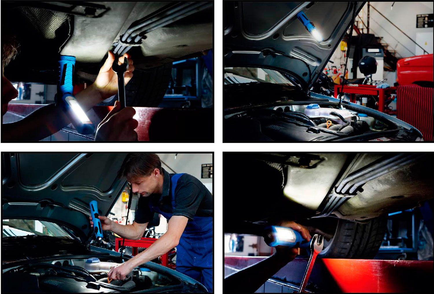 - За счет магнита и крюка, изгибающегося корпуса позволяет работать в труднодоступных местах не занимая руки;