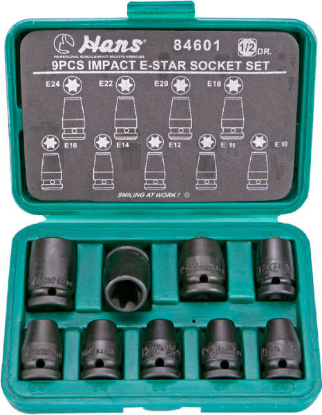 Комплект ударных головок 1/2" E10-E24 (9 предметов), Hans 84601