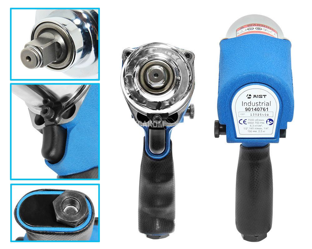 Пневмогайковерт ударный 1/2" 750Нм, twin hammer, Aist 90140761