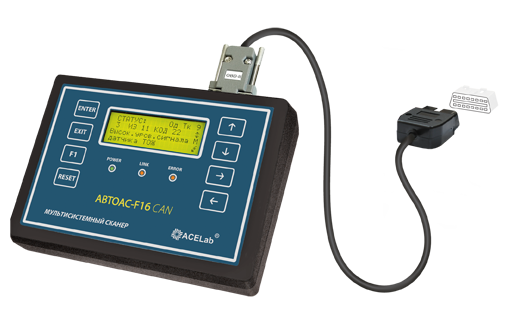 «АВТОАС-F16 CAN 24» - портативный мультимарочный сканер 3-го поколения для диагностики электронных систем управления двигателем и других систем автомобилей российского производства, а также распространенных автомобилей импортного производства.