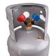 Оснащен двухвентильным коллектором, синий кран это жидкая фаза, красный кран это паровая фаза.