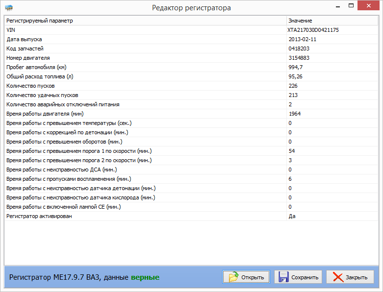 При сохранении образа EEPROM автоматически пересчитываются контрольные суммы служебных областей регистратора.