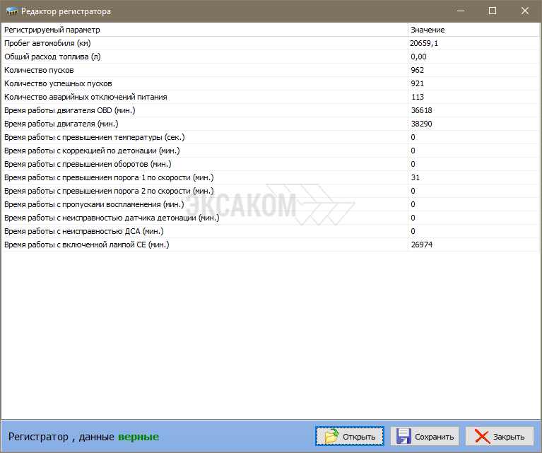 Дополнительный модуль для редактирования данных регистратора ЭСУД M74.8 и M74.9 автомобилей Нива (ПО ИТЭЛМА).
