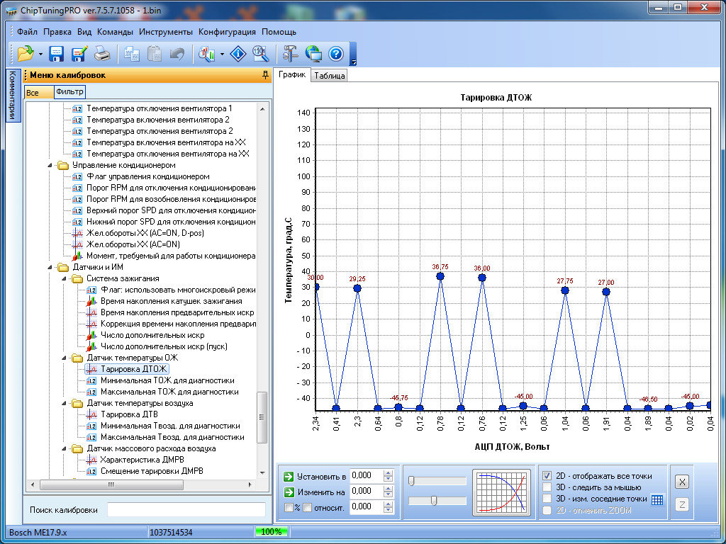 Вот так выглядят калибровки при попытке просмотра такой прошивки в ChipTuningPRO: