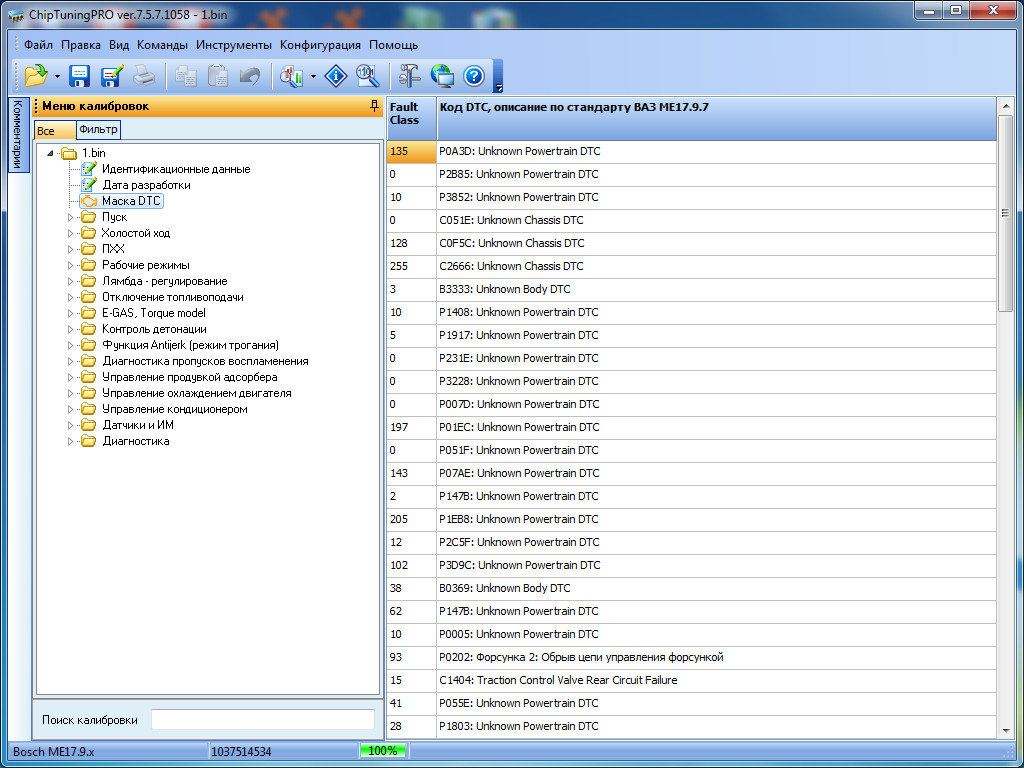 - Поддерживаются все серийные прошивки автомобилей ВАЗ и УАЗ, оснащённых ЭБУ Bosch M(E)17.9.7 и Bosch M(E)17.9.71.