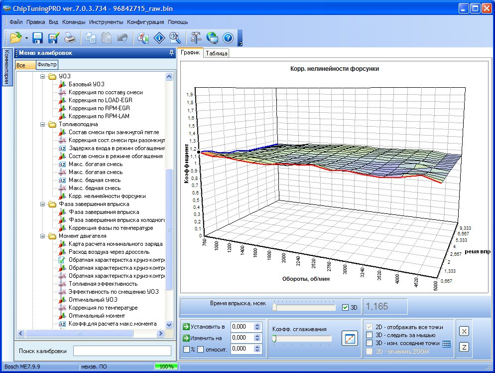 Карты содержат более 90 основных калибровок системы управления Bosch MЕ7.9.9: пусковые параметры (топливо, УОЗ, фаза, обороты выхода из режима пуска и др.), УОЗ во всех режимах, фазу впрыска, состав смеси, калибровки моментной модели (Torque-Based Model, включая E-GAS), калибровки лямбда-регулирования, обороты отсечки, тарировки датчиков, маску ошибок и др.