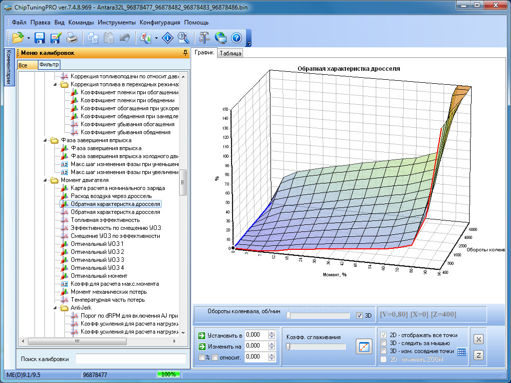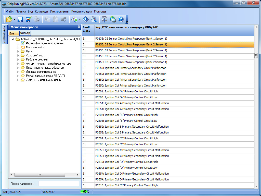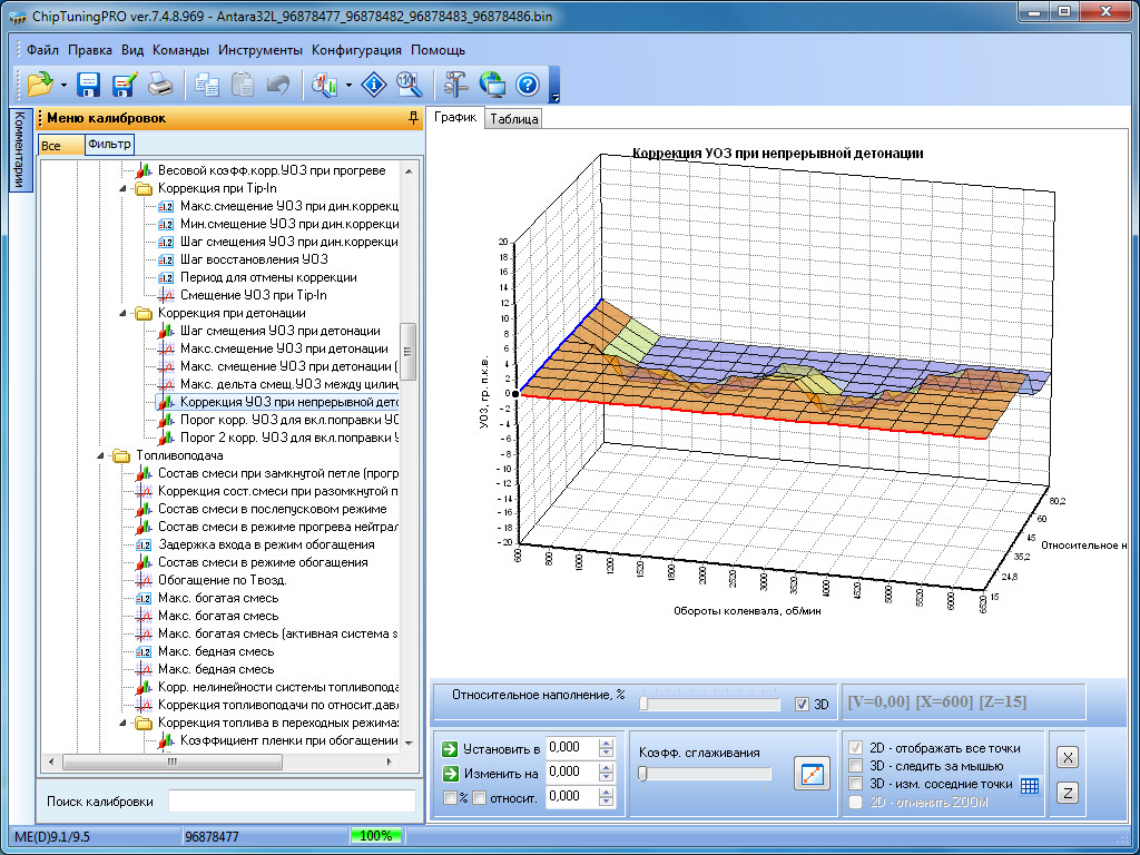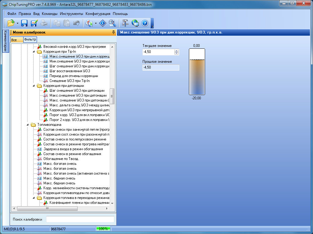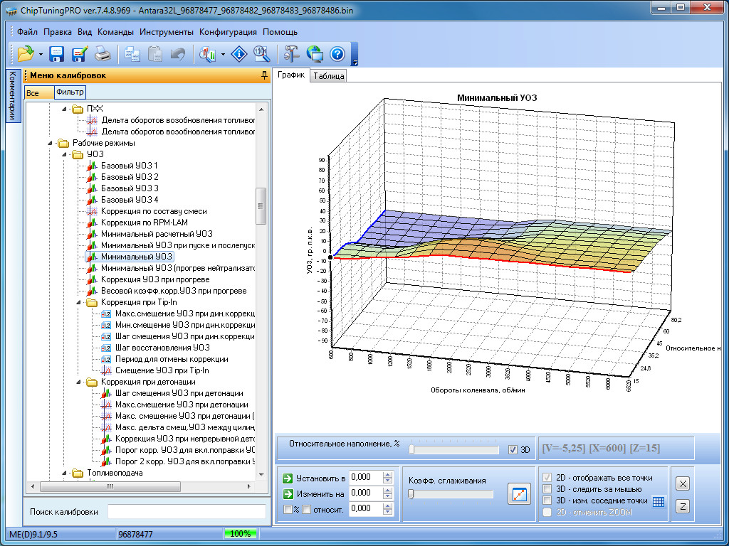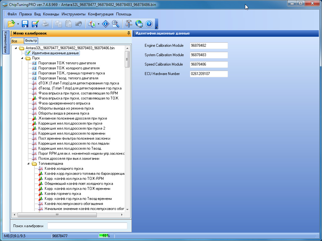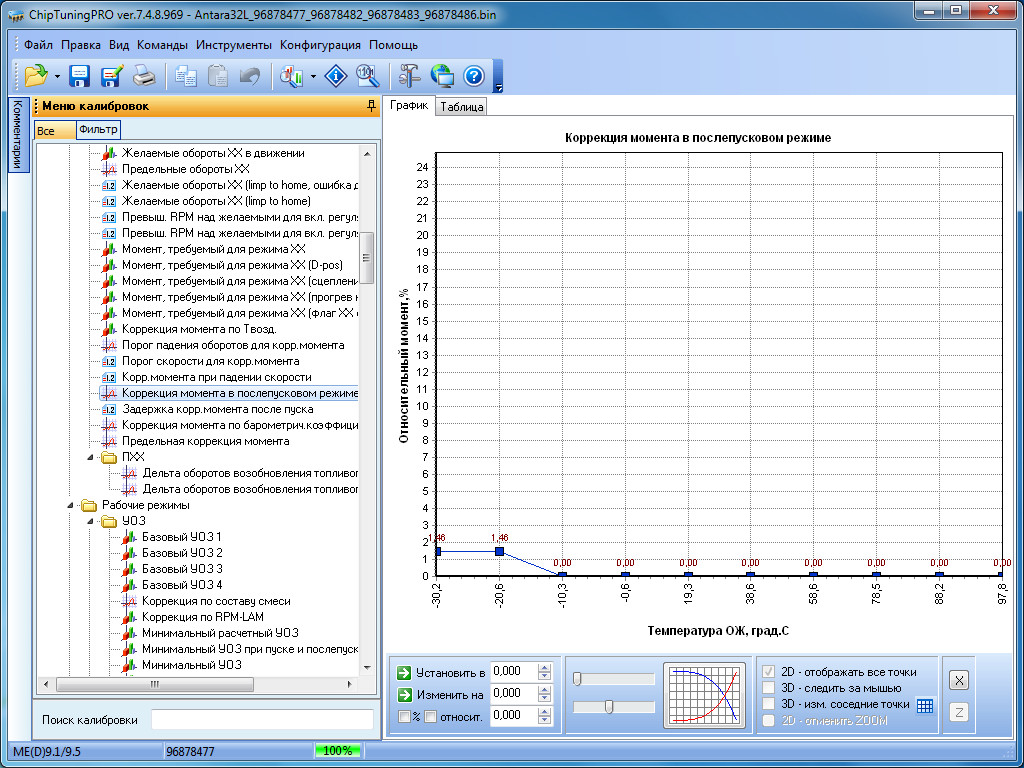 Карты содержат более 270 калибровок ЭСУД Bosch MЕ9.1: пусковые калибровки (топливоподача, УОЗ, фаза впрыска, обороты выхода из режима пуска и др.), УОЗ во всех режимах, фазу впрыска, состав смеси, калибровки моментной модели (Torque-Based Model, включая E-GAS и алгоритмы ограничения момента), фазы регулируемой системы газораспределения VVT, калибровки лямбда-регулирования, обороты отключения топлива, тарировки датчиков, маску DTC и др.