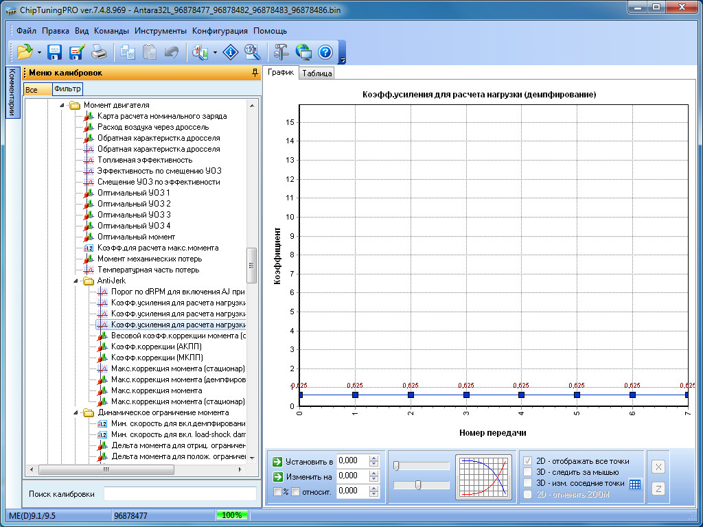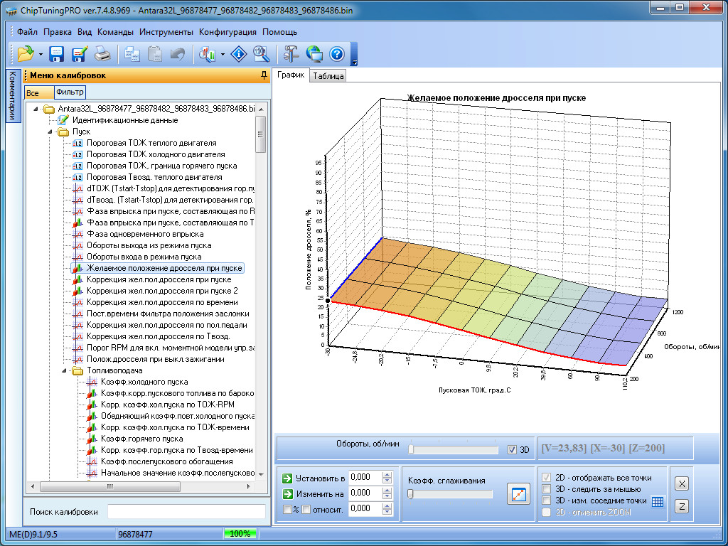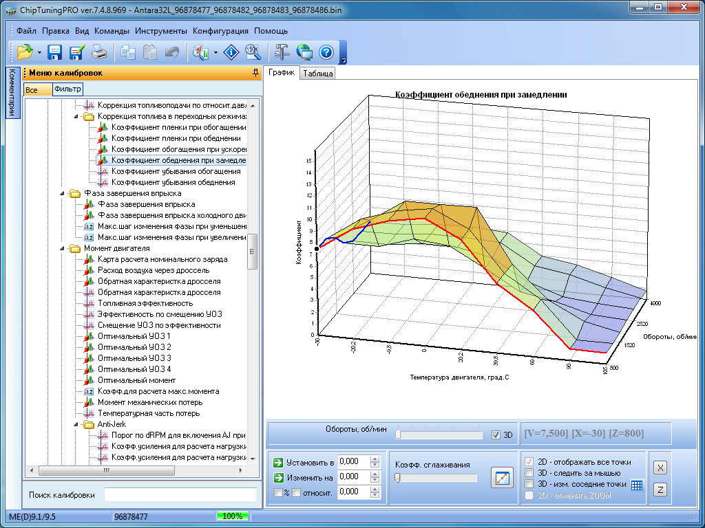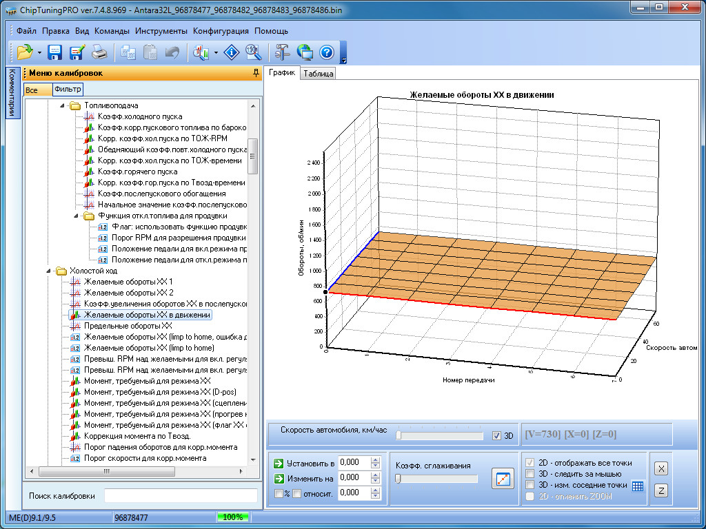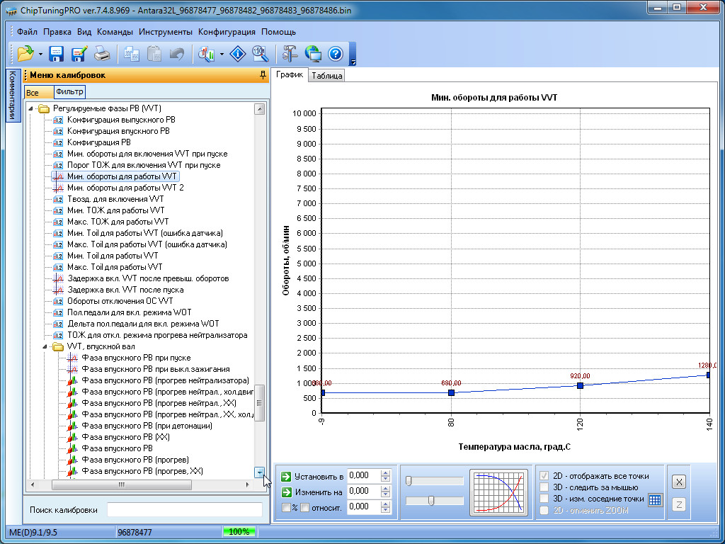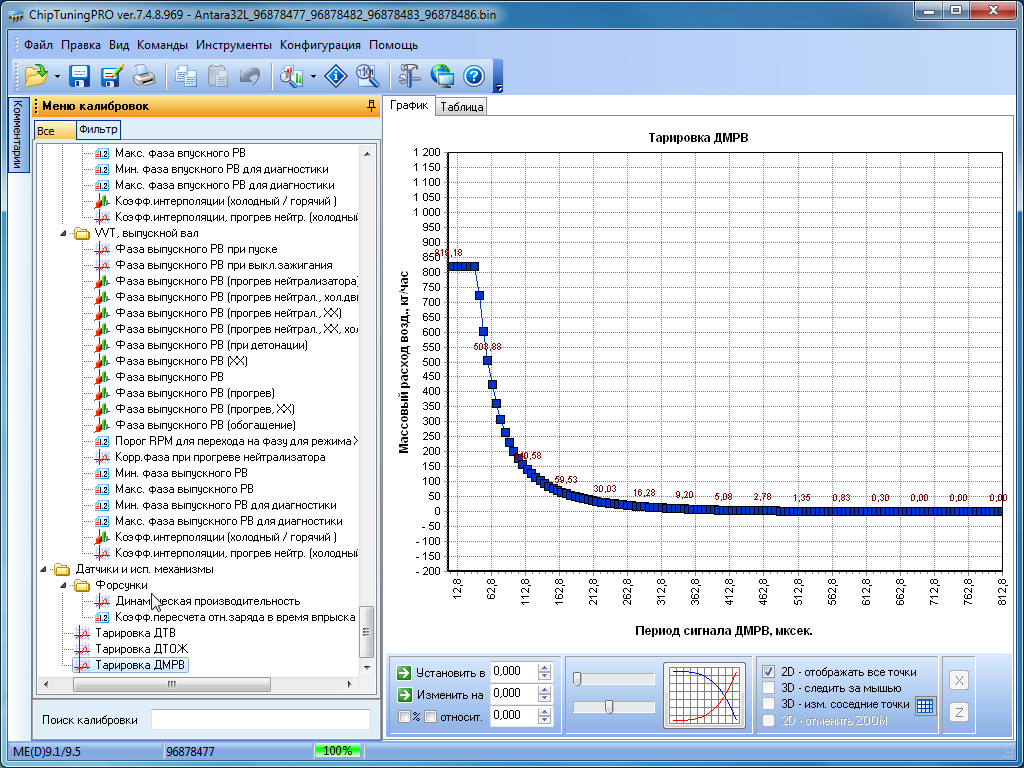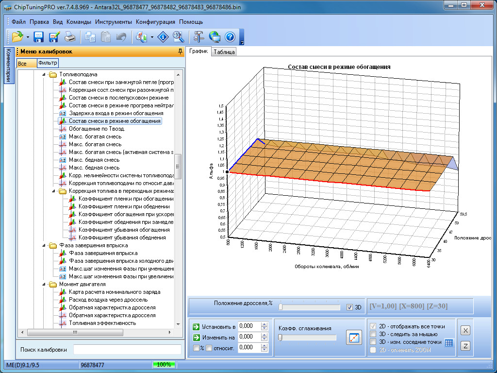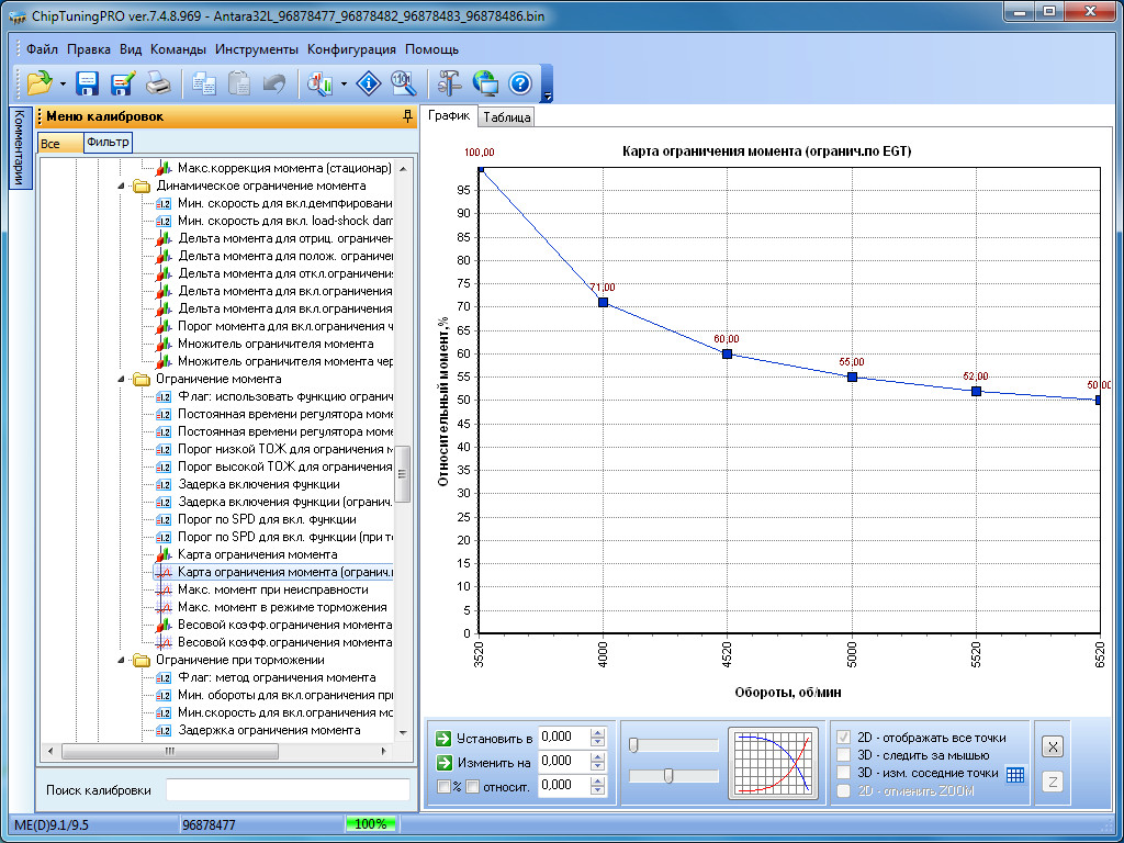 Карты содержат более 270 калибровок ЭСУД Bosch MЕ9.1: пусковые калибровки (топливоподача, УОЗ, фаза впрыска, обороты выхода из режима пуска и др.), УОЗ во всех режимах, фазу впрыска, состав смеси, калибровки моментной модели (Torque-Based Model, включая E-GAS и алгоритмы ограничения момента), фазы регулируемой системы газораспределения VVT, калибровки лямбда-регулирования, обороты отключения топлива, тарировки датчиков, маску DTC и др.