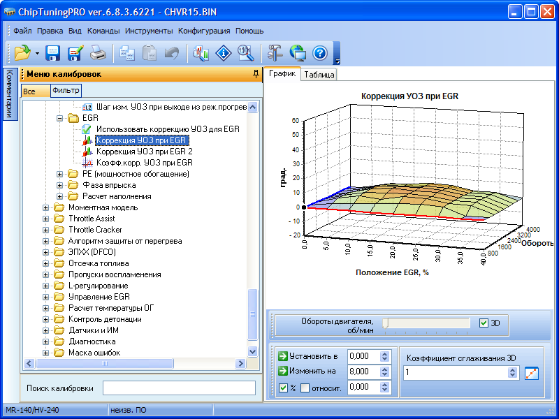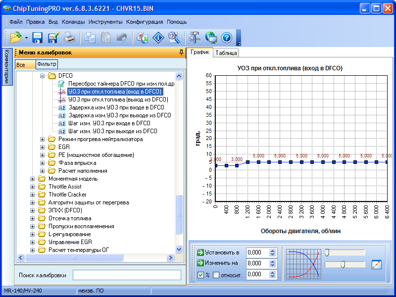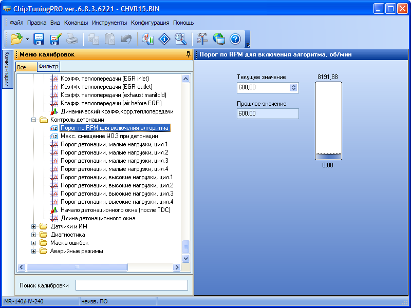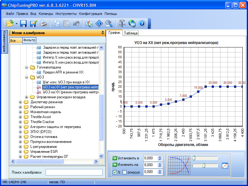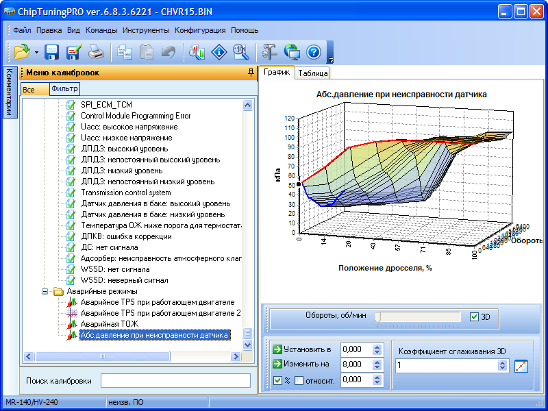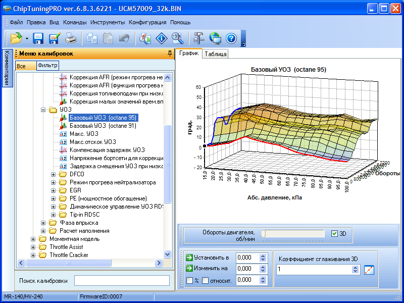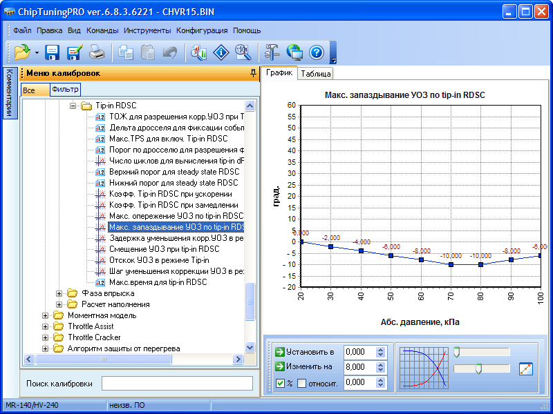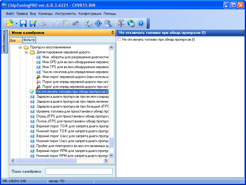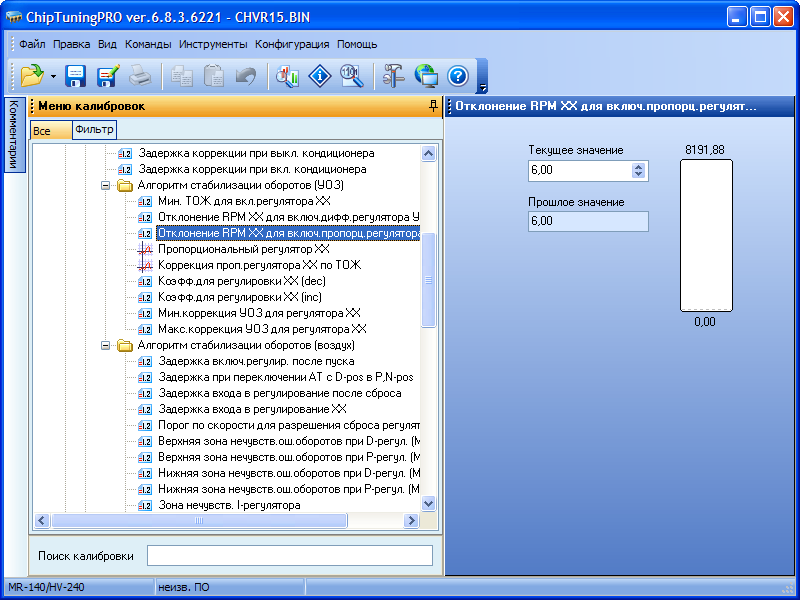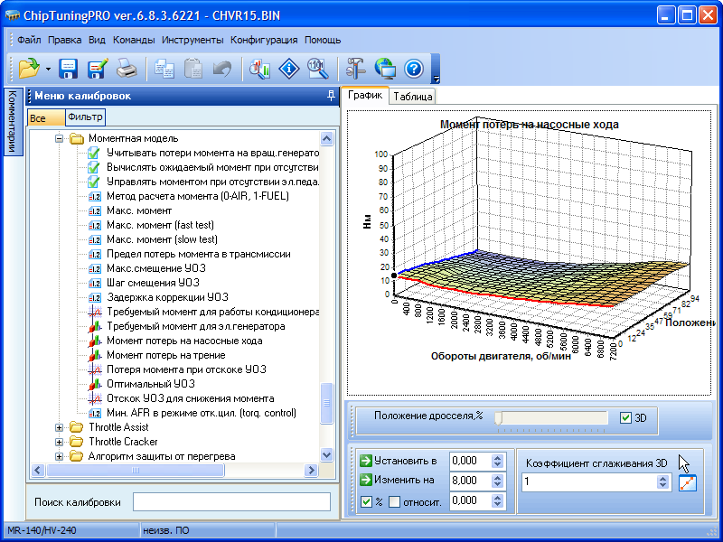 Позволяет производить чип-тюнинг автомобилей Chevrolet (Chevrolet Aveo 1.5, Chevrolet Lanos 1.5, Chevrolet Lacetti 1.8, Chevrolet Evanda 2.0), оснащенных ЭБУ MR-140 или HV-240. Работает совместно с ChipTuningPRO 6.8 или выше.Модуль не имеет аналогов и является мощным инструментом для профессионального тюнинга. Доступ к таким алгоритмам, как динамическая коррекция УОЗ RDSC, Tip-in RDSC, моментной модели и др. позволяет существенно изменить динамику и расход топлива. Огромное количество поддерживаемых калибровок, программных опций и маски ошибок позволяет производить чип-тюнинг нестандартных двигателей (например, с измененым рабочим объемом и фазами ГРМ) без замены ЭБУ. Карты содержат более 600 калибровок системы управления!
