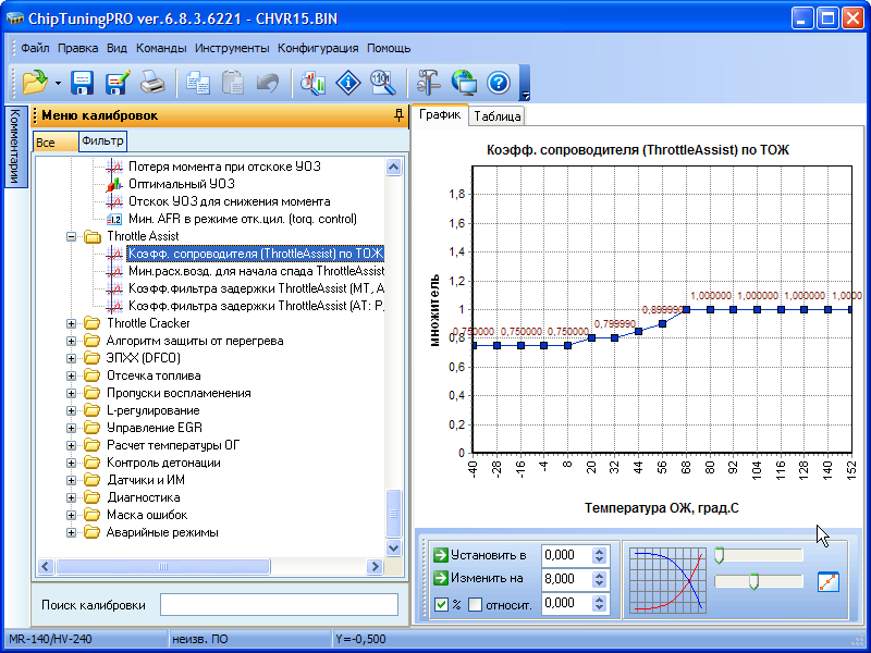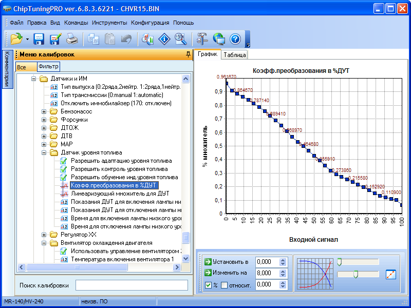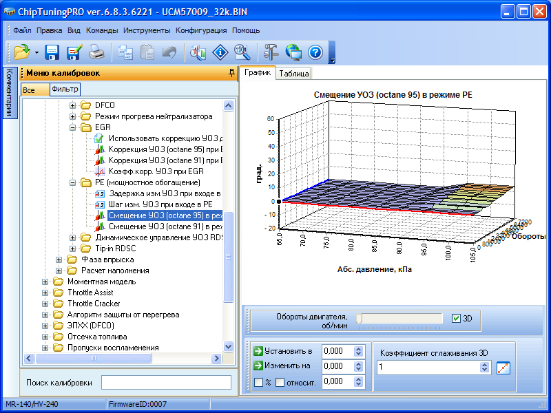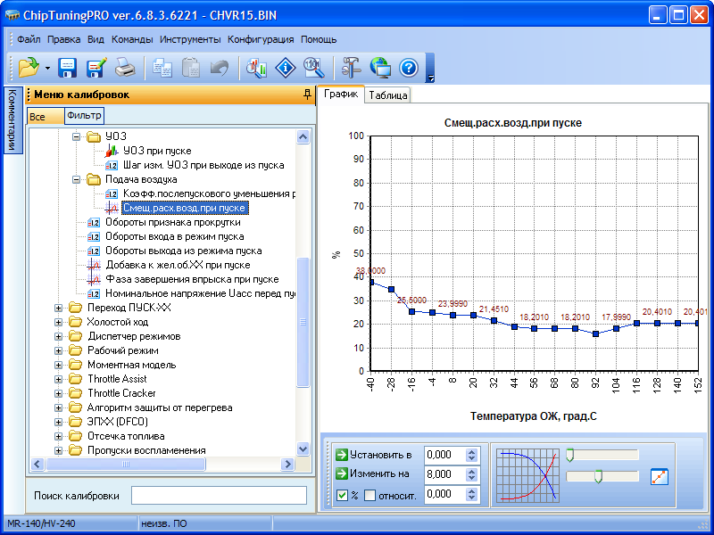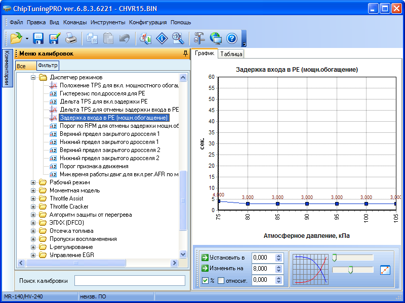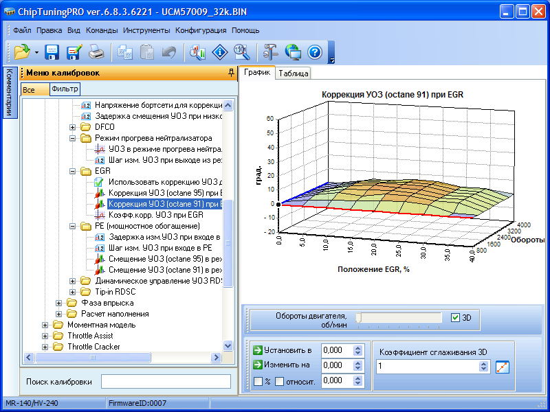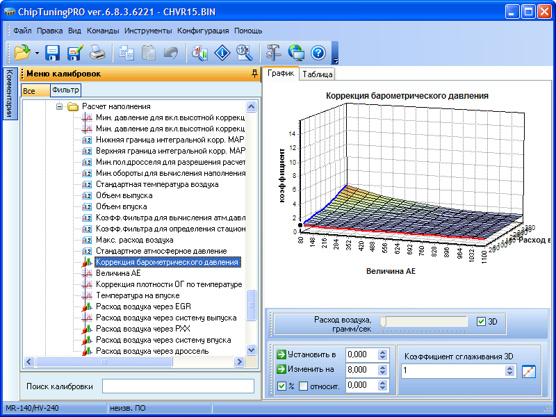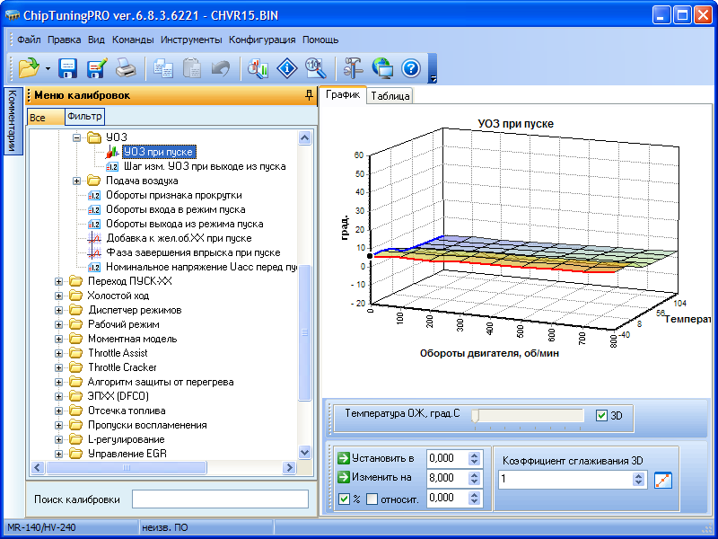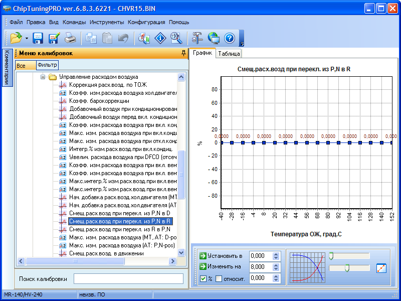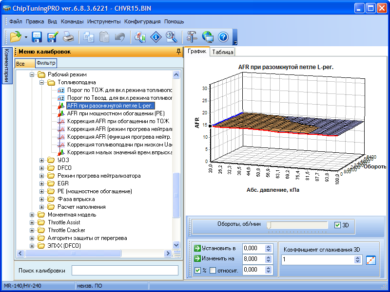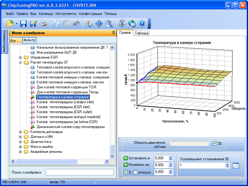 Позволяет производить чип-тюнинг автомобилей Chevrolet (Chevrolet Aveo 1.5, Chevrolet Lanos 1.5, Chevrolet Lacetti 1.8, Chevrolet Evanda 2.0), оснащенных ЭБУ MR-140 или HV-240. Работает совместно с ChipTuningPRO 6.8 или выше.Модуль не имеет аналогов и является мощным инструментом для профессионального тюнинга. Доступ к таким алгоритмам, как динамическая коррекция УОЗ RDSC, Tip-in RDSC, моментной модели и др. позволяет существенно изменить динамику и расход топлива. Огромное количество поддерживаемых калибровок, программных опций и маски ошибок позволяет производить чип-тюнинг нестандартных двигателей (например, с измененым рабочим объемом и фазами ГРМ) без замены ЭБУ. Карты содержат более 600 калибровок системы управления!