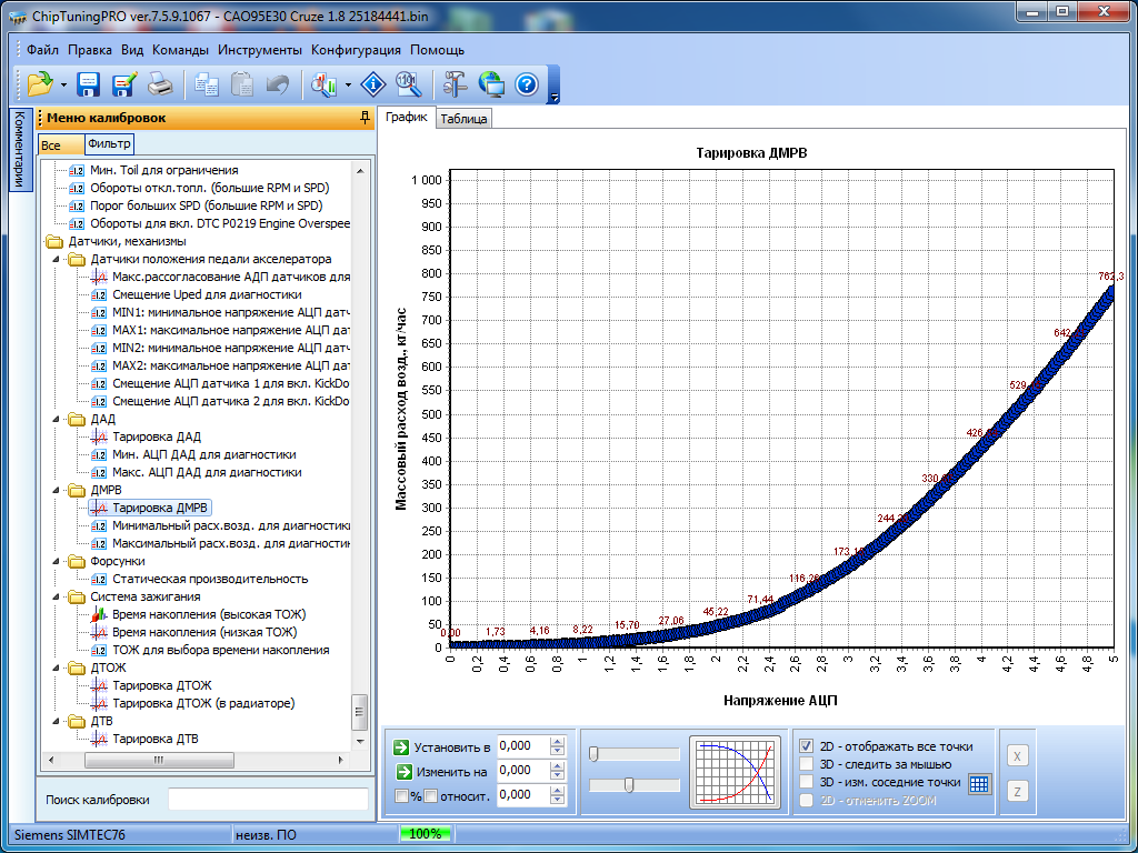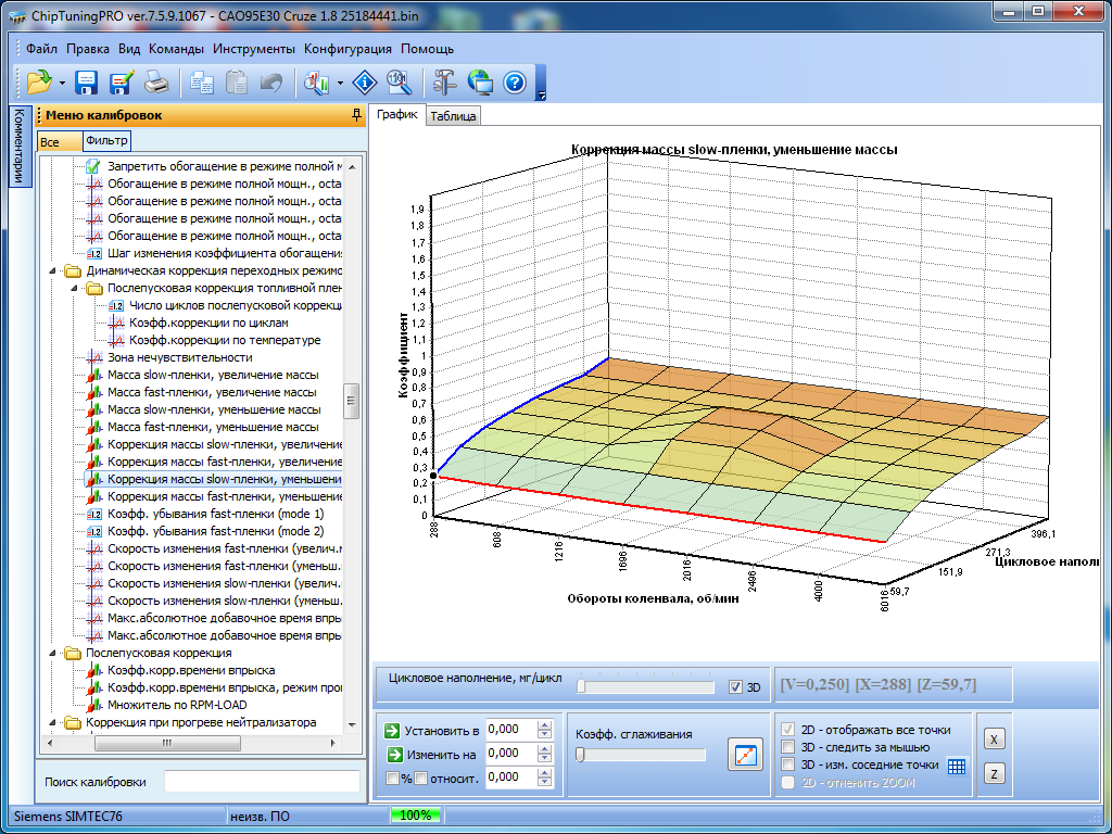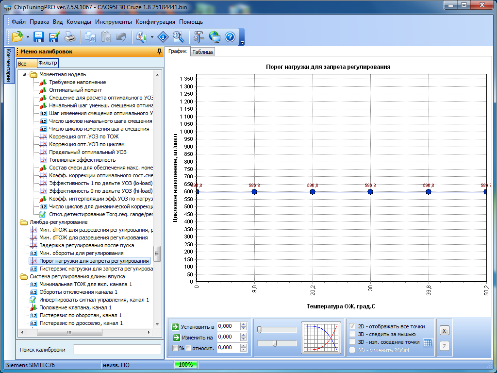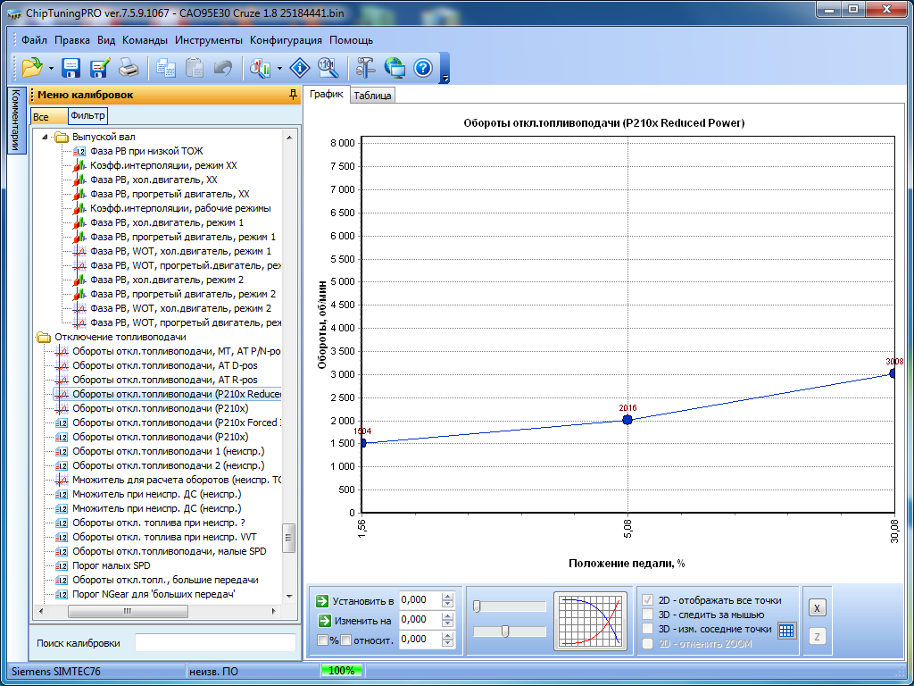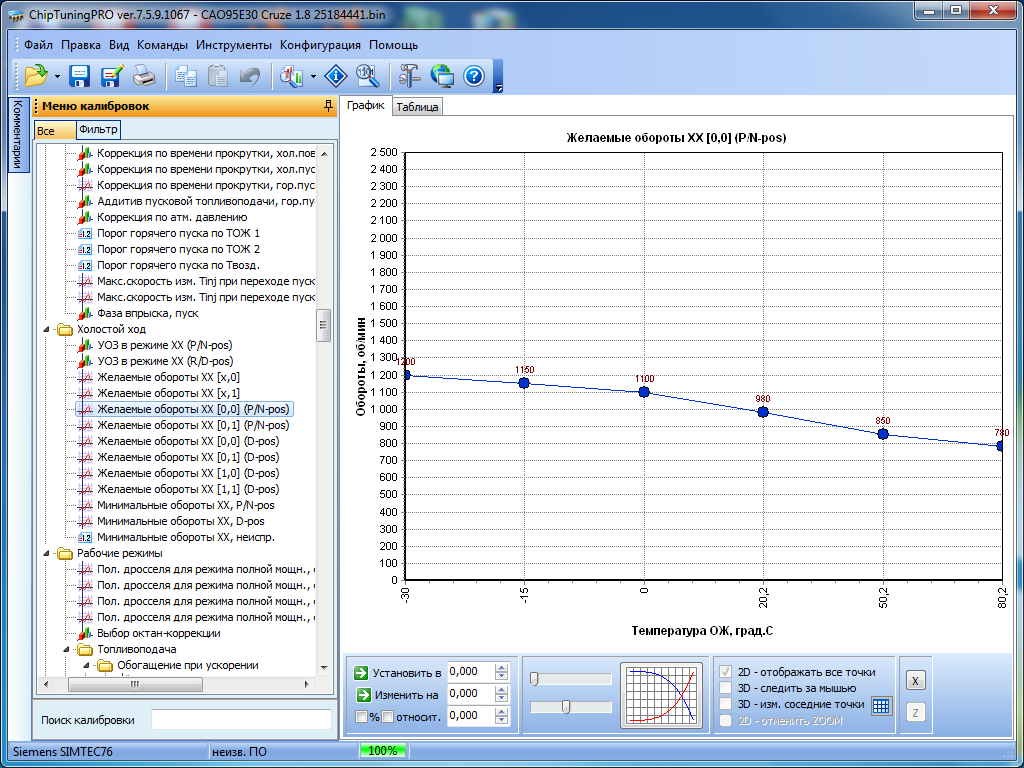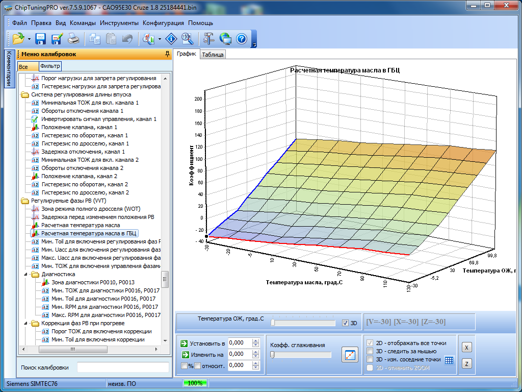 Карты содержат более 400 калибровок ЭСУД SIMTEC76: пусковые калибровки (топливоподача, УОЗ, фаза впрыска, положение дросселя при пуске и др.), УОЗ и его коррекции, фазу впрыска, состав смеси, различные коррекции состава смеси, калибровки моментной модели, EGAS, калибровки системы регулирования фаз ГРМ и геометрии впускного тракта, калибровки лямбда-регулирования, обороты отключения топлива, тарировки датчиков, маску DTC и др.